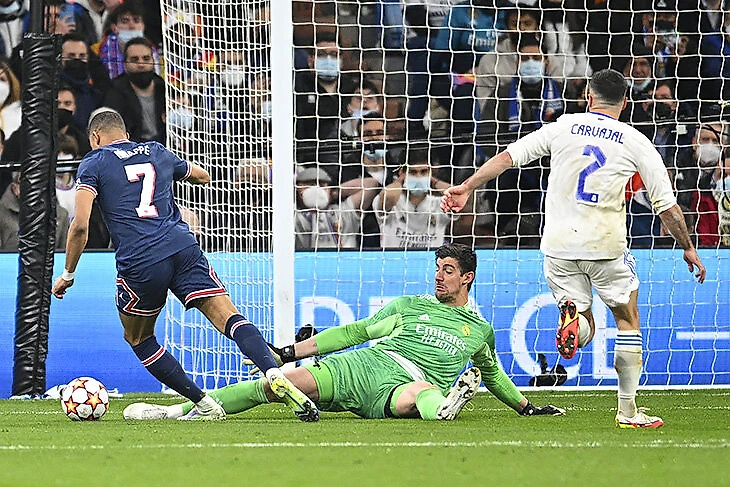Тогда «Реал» не выручили ни Бензема, ни Винисиус, ни Модрич – жалкие 0,1 xG. Но «ПСЖ» заковырял лишь один гол исключительно благодаря Куртуа: бельгиец вытащил кучу ударов, а главное – взял пенальти от Лионеля Месси. «ПСЖ» должен был ехать в Мадрид с более комфортным преимуществом. И должен был развить его на «Сантьяго Бернабеу»: но на 15-й минуте Куртуа взял опасный удар Мбаппе.