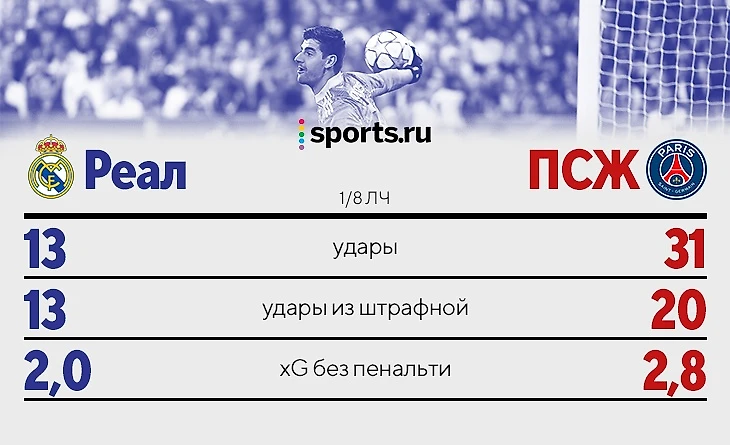 В 1/8 финала «Реал» прошел «ПСЖ». Первый парижский матч превратился в катастрофу для испанцев. «Реал» установил клубный антирекорд в Лиге чемпионов по ударам (3) и передачам в штрафную (9). Зато Тибо Куртуа сделал 8 сэйвов (личный рекорд в ЛЧ, который он еще побьет в этом розыгрыше) и отразил пенальти от Лео Месси.