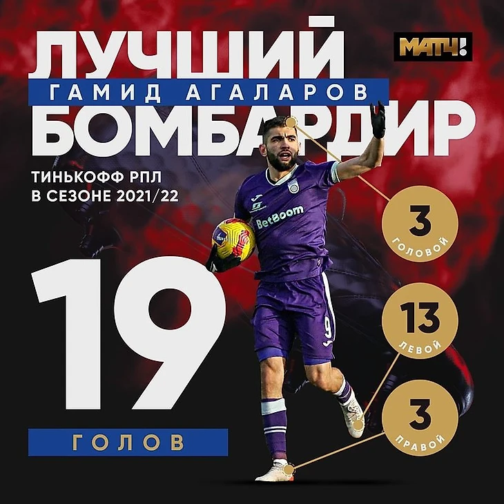 Гамид Агаларов - лучший бомбардир РПЛ сезона 2021/2022