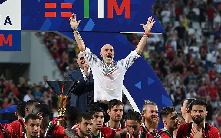 Одним из главных катализаторов успеха россонери стал их тренер. Стефано до назначения в Милан был средним тренером, сообсветственно как и футболистом до этого. Играл на позиции защитника, хотя обладал не самым высоким ростом для этой позиции. Ему повезло попасть в Ювентус в середине восьмидесятых, где он смог зацепить Кубок Чемпионов и Чемпионат Италии. Далее выступал за Верону и Фиорентину и даже однажды вызывался в сборную Италии, но в целом, почти всю карьеру провел в середняках. Собственно, как и почти всю свою тренерскую карьеру. 8 лет подряд проводил максимум полтора года в клубе, а потом его увольняли. Потом ему удалось провести удачную работу с Болоньей и его назначили в Лацио, но там он задержался всего на два года. Далее дважды был временщиком в Интере и Фиорентине и поэтому назначение в Милан походу сезона 2019-2020 было большой неожиданностью. Спасать сезон вызвали среднего по итальянским меркам тренера, так еще и бывшего аленаторе Интера. Но Пиоли смог удачно закончить чемпионат, что дало ему шанс провести еще сезон в Милане. И он им воспользовался отлично. Впервые за 7 лет вывел россонери в ЛЧ, заняв второе место, борясь за чемпионство до апреля. Летом 2021 Милан воспринимался, как борец за ЛЧ, но не более. В борьбе за Скудетто фаворитами были Ювентус и Интер. Да и на зону Лиги Чемпионов претендовали ещё 4 команды. Но Мальдини отлично поработал на трансферном рынке, заменив Доннарумму на Меньяна, подписав бесплатно Жиру, выкупив Томори у Челси и взяв перспективного Калулу. В итоге все четверо стали основными, а Пиоли выжал из каждого максимум. Итальянец ставит довольно простой футбол. Его команда забирает мяч играя только против команд со дна таблицы. Поэтому Милан только седьмой в лиге по владению мячом(54% за игру в среднем- довольно низкий показатель) С середняками и топами Милан не настаивает на своем владение и играет на переходных фазах, где себя прекрасно чувствуют Леао,Тео и Салемакерс. Первое два образовали отличную связку на левом фланге. И в основном благодаря их игре в атаке Милан создает моменты. Задача остальных: создать изоляцию на фланге для одного из них и открываться под их пас, когда они обыграют своего оппонента. Это как раз и подтверждает, то что Милан лидер по обводкам в Серии А. Игра строится через сильные качества лидеров. Этот метод очень похож на то, что делал и продолжает делать Анчелотти. Создает максимально удобные для своих футболистов условия на поле и за его пределами, а они ему дают результат. Милан не лидер по всем ключевым метрикам для топ клуба в Серии А. По забитым мячам и ударам 4-й, по владению 7-й, по голевым моментам и ударам в створ 5-й, а по точности передач всего 8-й. Пиоли не стал обременять своих футболистов высоким прессингом и сложным билд-апом, он просто подобрал идеальные сочетания на поле и образовал отличный микроклимат, что в итоге привело к чемпионству.