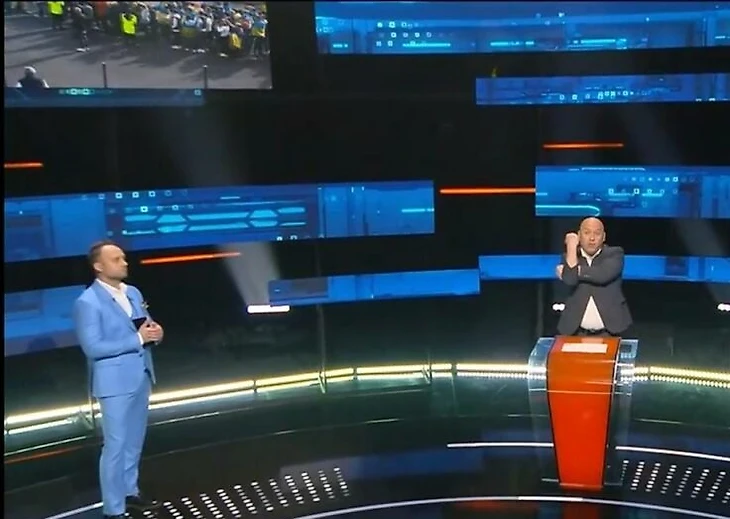 Украинский политолог Василь Вакаров сначала спросил Анисимова, почему «Матч ТВ» не показывал матч с Шотландией, а затем поздравил сборную с попаданием в следующую стадию. Другой политолог Андрей Сидорчик признался, что в советские годы болел за киевское «Динамо», но во взрослом возрасте перестал топить за Украину из-за отстранения России.