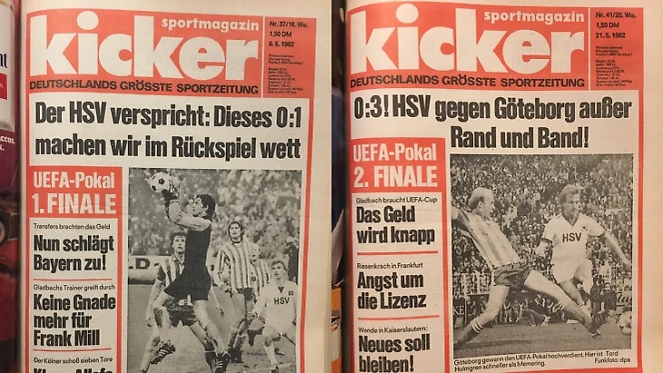 Отчёты ведущего западногерманского футбольного издания Kicker о финальных матчах. После первого матча генеральная фраза номера звучала оптимистично: "Гамбург обещает: компенсируем 0-1 в ответной игре"