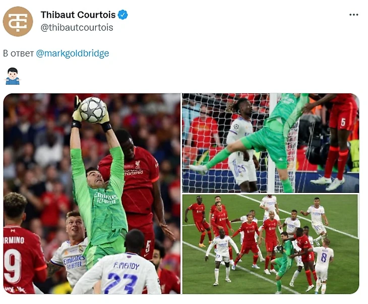 Но 30-летнему вратарю «Реала» это явно не нравилось, и он пришел в реплаи к Марку – просто запостил фото своей игры на выходе в финале Лиги чемпионов.