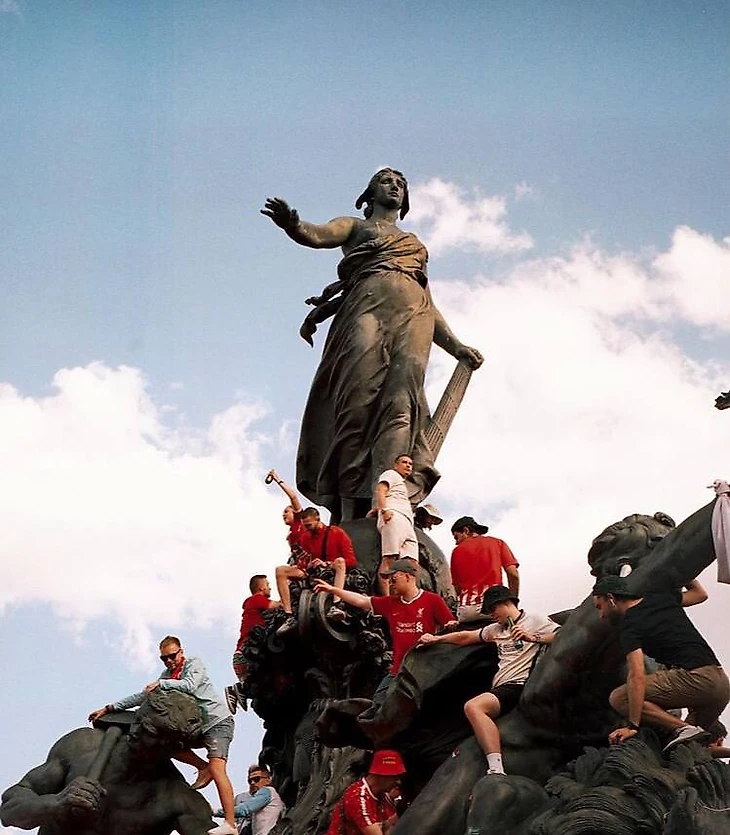 Фанаты «Ливерпуля» вокруг памятника «Триумф Республики в Париже
