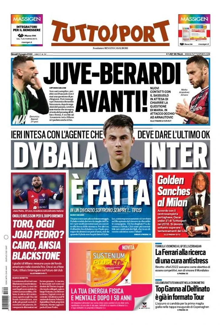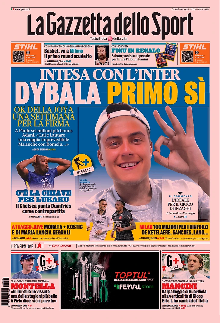 Дибала, первое «да». Заголовки Gazzetta, TuttoSport и Corriere за 9 июня