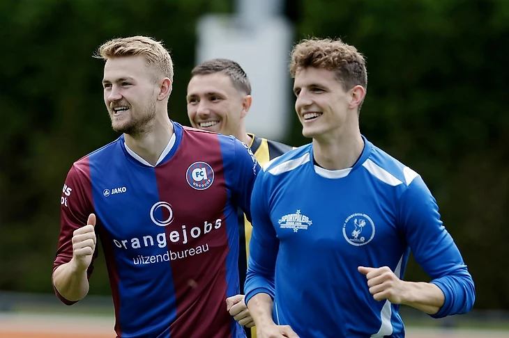 Акция с тренировкой в форме детских клубов - еще один символический, но чертовский важный жест, подчеркивающий значимость детских любительских клубов, о которых мы могли даже не слышать. Например, пока "Барселона" и МЮ ведут спор на десятки миллионов евро о том, в чьей футболке Френки де Йонг проведет следующий сезон, сам Френки отбегал тренировку в футболке школы "Аркел" из-под Утрехта, в которой он тренировался с 6 до 8 лет. Капитан сборной Дейли Блинд, который ассоциируется только с "Аяксом", провел тренировку в красно-черной майке клуба "Амстердамше", которому, на секундочку, 127 лет, а сам Дейли туда пришел пятилетним сопляком. Матейс Де Лигт непривычно красовался в сине-бордовом комплекте формы клуба "Абкуде", где также тренировался с 6 лет.
