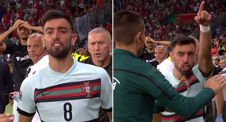 Бруну Фернандеш сорвался. Истерил и ругался со швейцарцами после замены