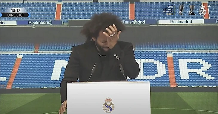 На прощальной пресс-конференции легенда Мадрида произнес пронзительную речь, периодическую пуская скупую мужскую слезу.