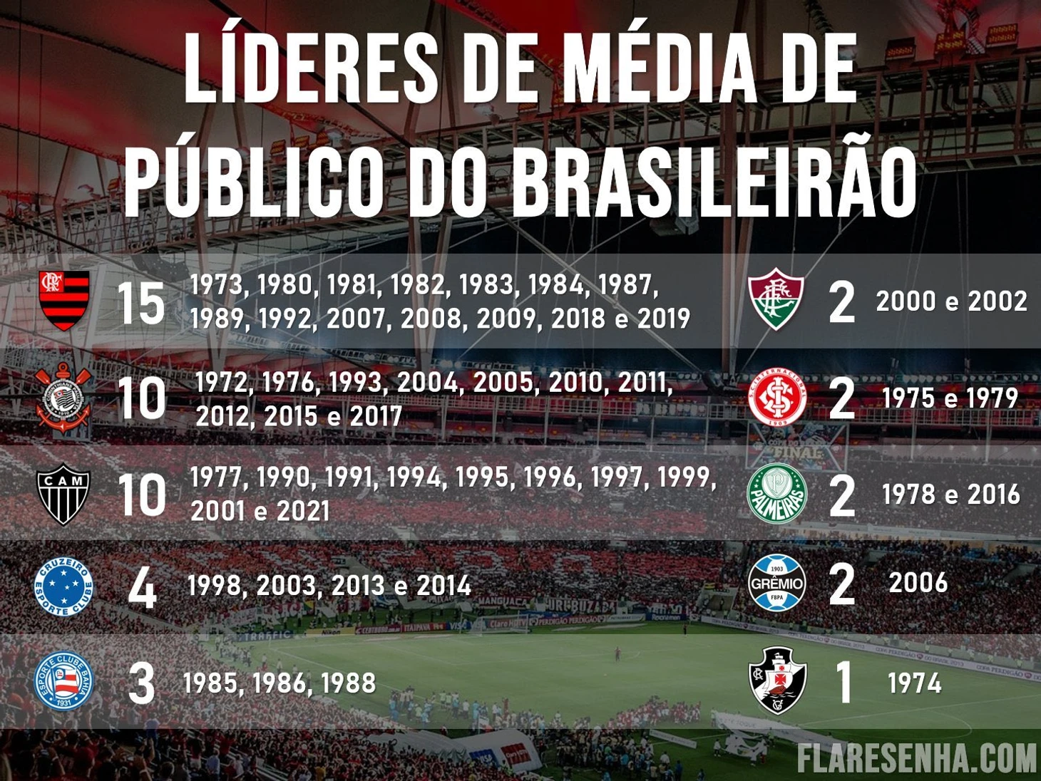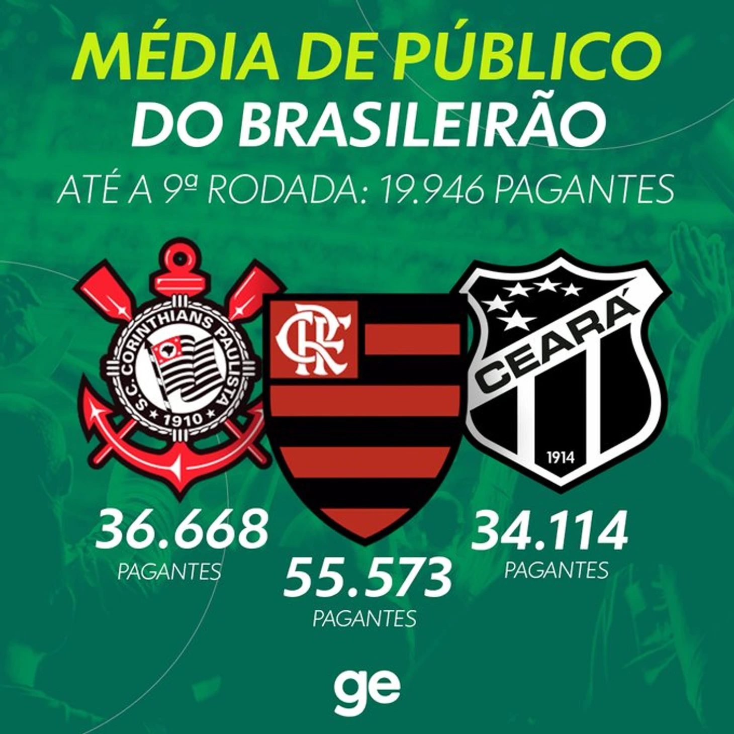 Средняя же посещаемость Бразилейрао в этом году тоже радует. Если взять первые девять туров, средняя аудитория Brasileirão будет самой высокой за последние 10 лет: 19 946 человек.