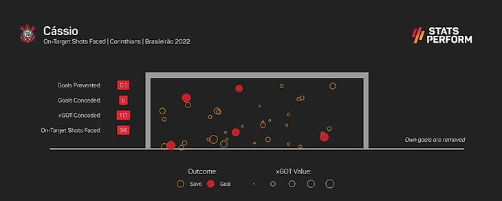 Не говоря уже о Жоао Викторе и Питоне. Ну и конечно же как не вспомнить великана Кассио? По показателю ожидаемых голов (xGoT), скуластый кипер имеет самый лучший показатель в Бразилейрао-шесть.