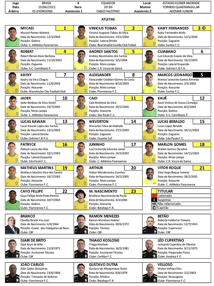 Поздравим молодежку U-20 (в реальности собраны парни 2003-2005 г.р.). Выигран в одну калитку товарищеский турнир. Подопечные Рамона Менезеса (Рамона Убнера в игроцкие годы) играли красиво, на оле и в атаку. Выделялись Винисиус Тобиас (зацените его эластико с Эквадором), опорник Васко Андрей,Жадер из "Паранаэнсе", Матеус Мартинс из Флу и троица нападения Витор Роке-Маркос Леонардо-Матеус Насименто. Даже Каики из Сити. И всех стаховала пара загейро Каики (уже из Сантоса) и Роберт из "Коринтианс".