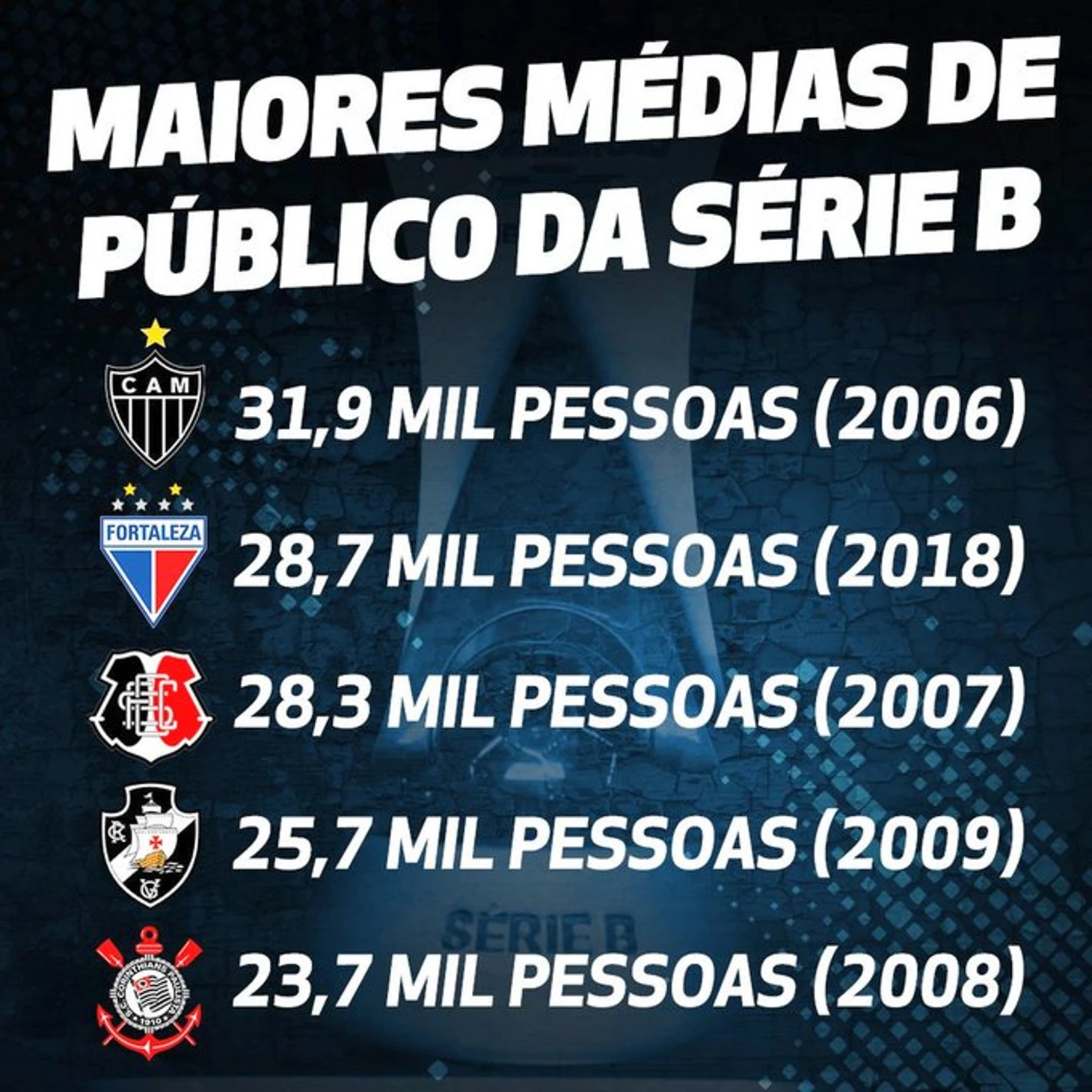 А вообще в Бразилии любят футбол и посещаемость второй лиги приятно удивляет. Обратите внимание на цифры Санта-Круза-с такой преданной торсидой он вообще вылетел в Серию С в том году.