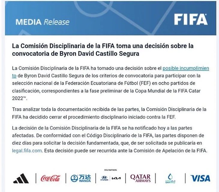 Порадуемся за Эквадор. ФИФА все-таки не приняла сторону чилийцев и отправила их жалобы в Спортлото.