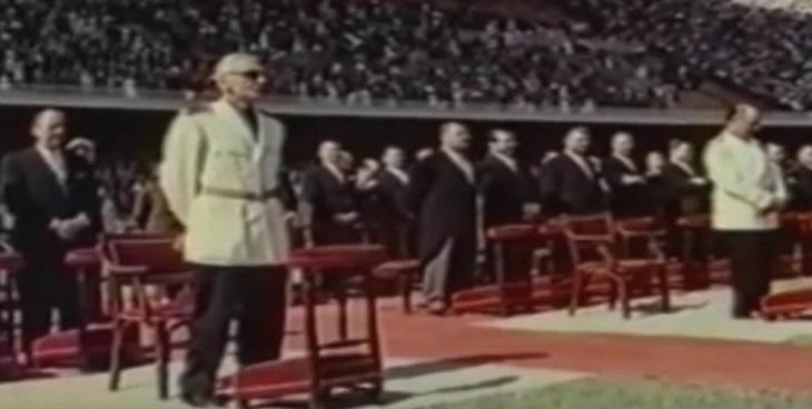 1970 год. Дань уважения Франко во время перерыва финала Кубка страны, который состоялся на «Камп Ноу» 29 июня. Бывшие игроки «Барсы» благодарят каудильо за его присутствие, а президент «Барсы» вручает ему мемориальную доску.