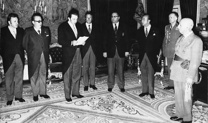 Рамон Серрано Суньер был ключевой политической фигурой в окружении Франко и главным «конструктором» франкистской политической системы. Его прозвали Cuñadísimo («куньядиссимус») — от испанского слова «куньядо» (шурин), по аналогии с «генералиссимусом». По его инициативе 30 января 1938 было сформировано правительство, состоявшее из отдельных министерств (ранее у франкистов не было такого органа власти). Он же сыграл ключевую роль в подборе кандидатур министров из числа фалангистов, «карлистов», «альфонсистов» (сторонников свергнутого в 1931 короля Альфонса XIII), военных и технократов. Его влияние было столь велико, что ему удалось настоять на отказе предоставить пост министра промышленности и торговли родному брату Франко Николасу, который был вскоре отправлен послом в Португалию. Серрано Суньер угрожал отставкой в том случае, если Франко проявит «семейственность». Сам Серрано Суньер занял в правительстве наиболее значимый пост министра внутренних дел, на котором руководил репрессиями против сторонников республики.