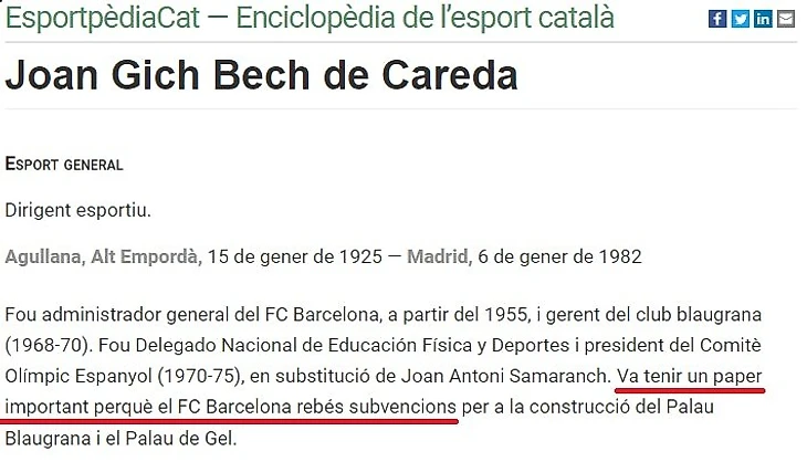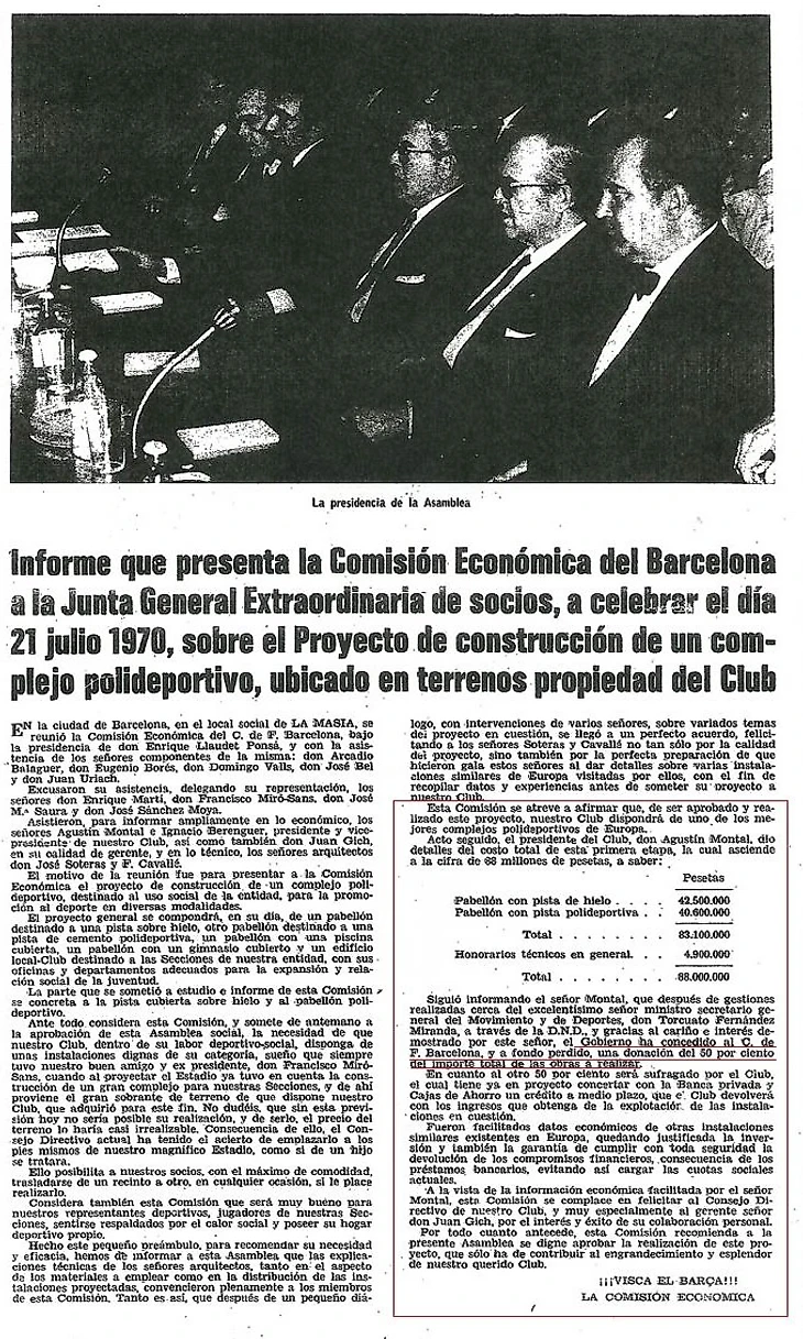 1970 год. Жоан Гич (бизнесмен, член «Фланги» и один из директоров «Барсы» в период с 1955 по 1969 год) назначен на должность делегата по спорту и физическому воспитанию вместо Хуана Антонио Самаранча. Бывший генеральный секретарь «Барсы» получил высшую руководящую должность в испанском спорте. Именно с помощью влияния Жоана клуб смог получить безвозвратную субсидию от правительства.