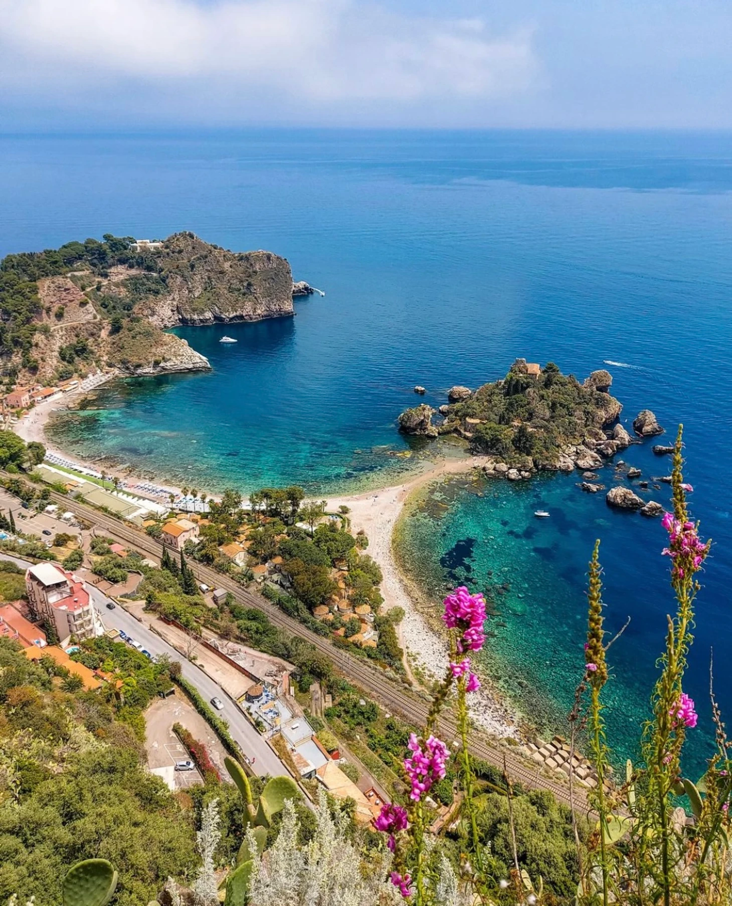 Великолепна природа Таормины. Ее крутые, узкие улочки живописно карабкаются склонами Монте-Тауро, с верхних обзорных площадок открываются потрясающие виды на далёкий вулкан Этна, на тихие пляжи, расположенные у подножья города, а также на небольшой остров Изола Белла («красивый остров»), словно прилепившийся к окраинам города.