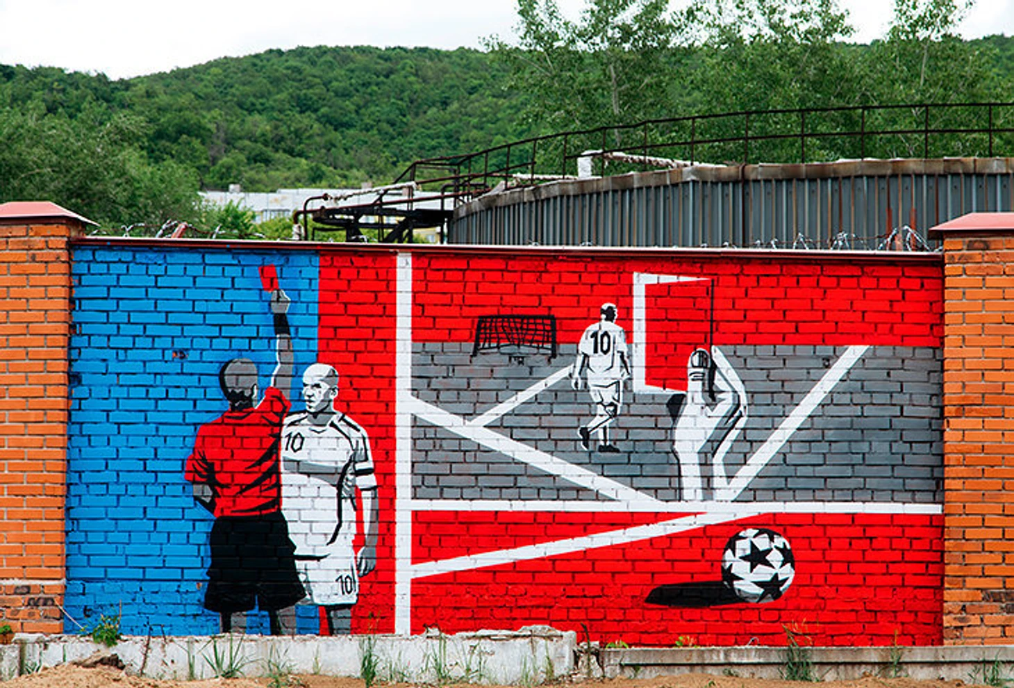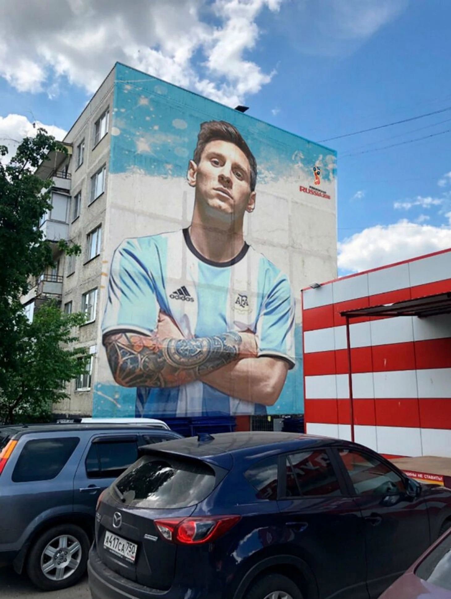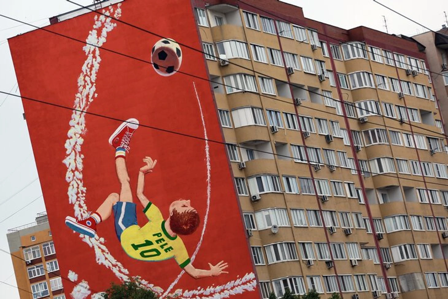 Пока это не приобрело повсеместный тренд, но мы на всякий случай пробежались по другим произведениям уличного искусства, посвященного домашнему ЧМ.