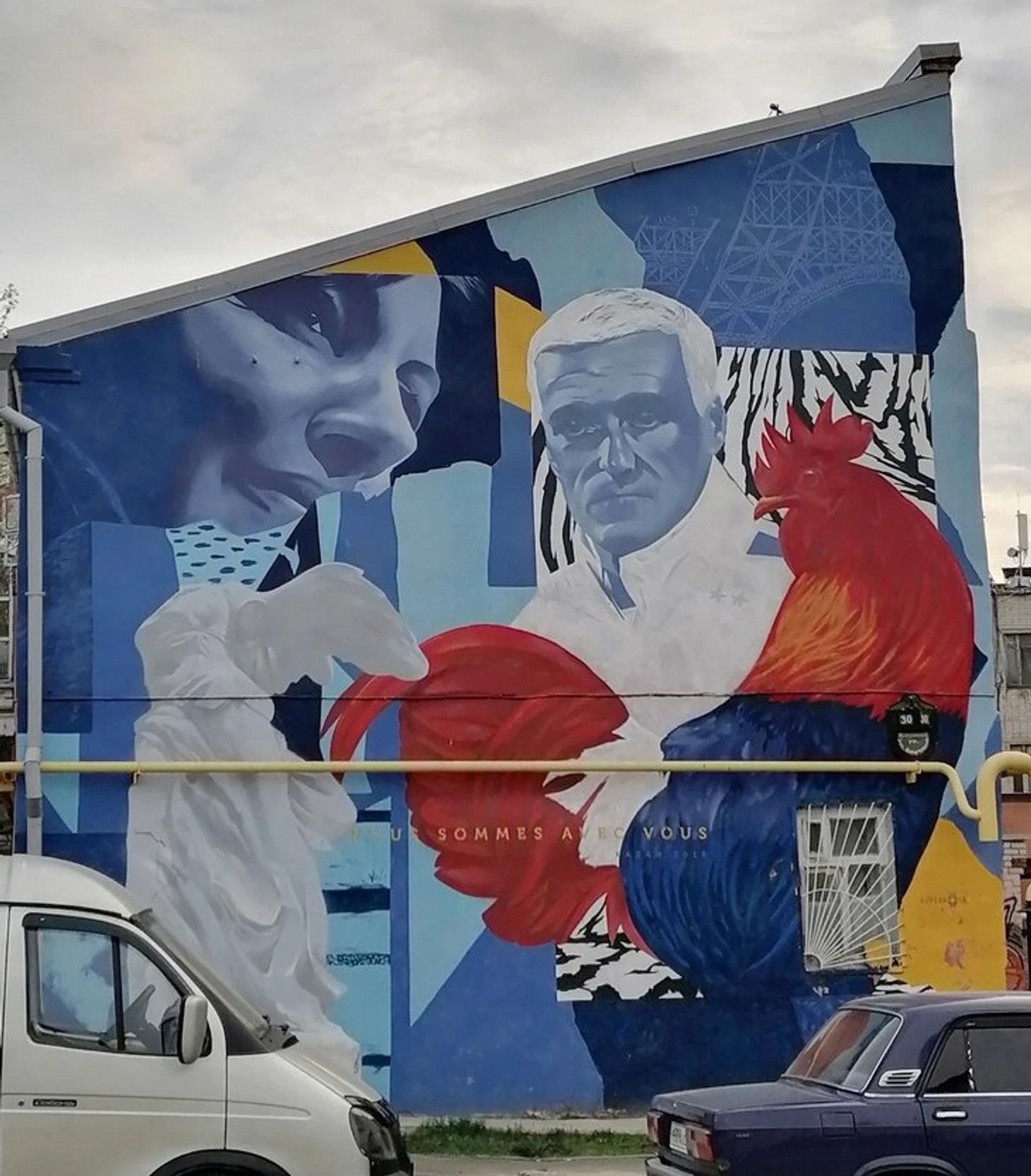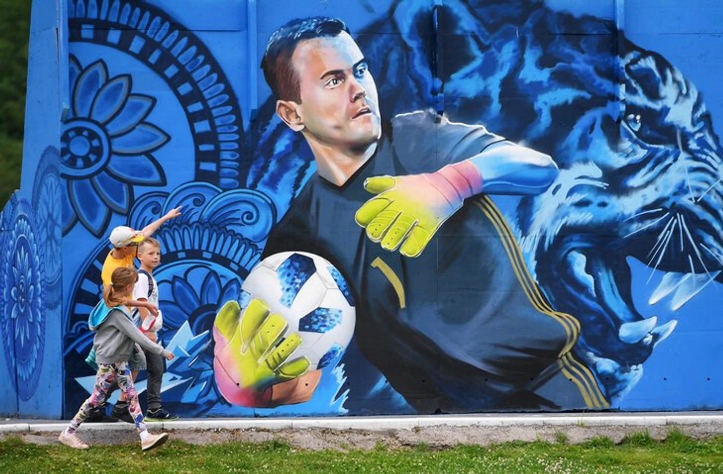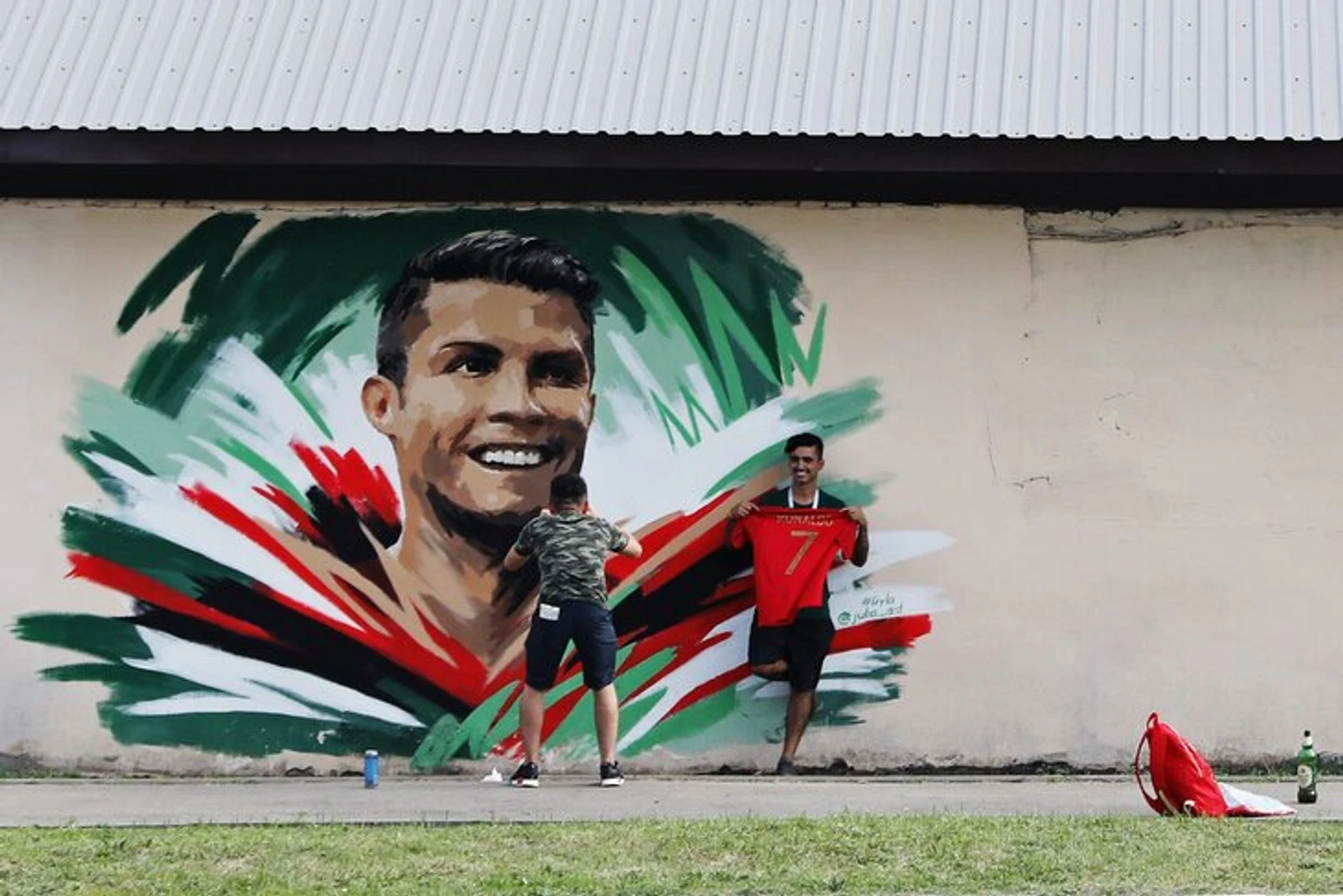 Пока это не приобрело повсеместный тренд, но мы на всякий случай пробежались по другим произведениям уличного искусства, посвященного домашнему ЧМ.