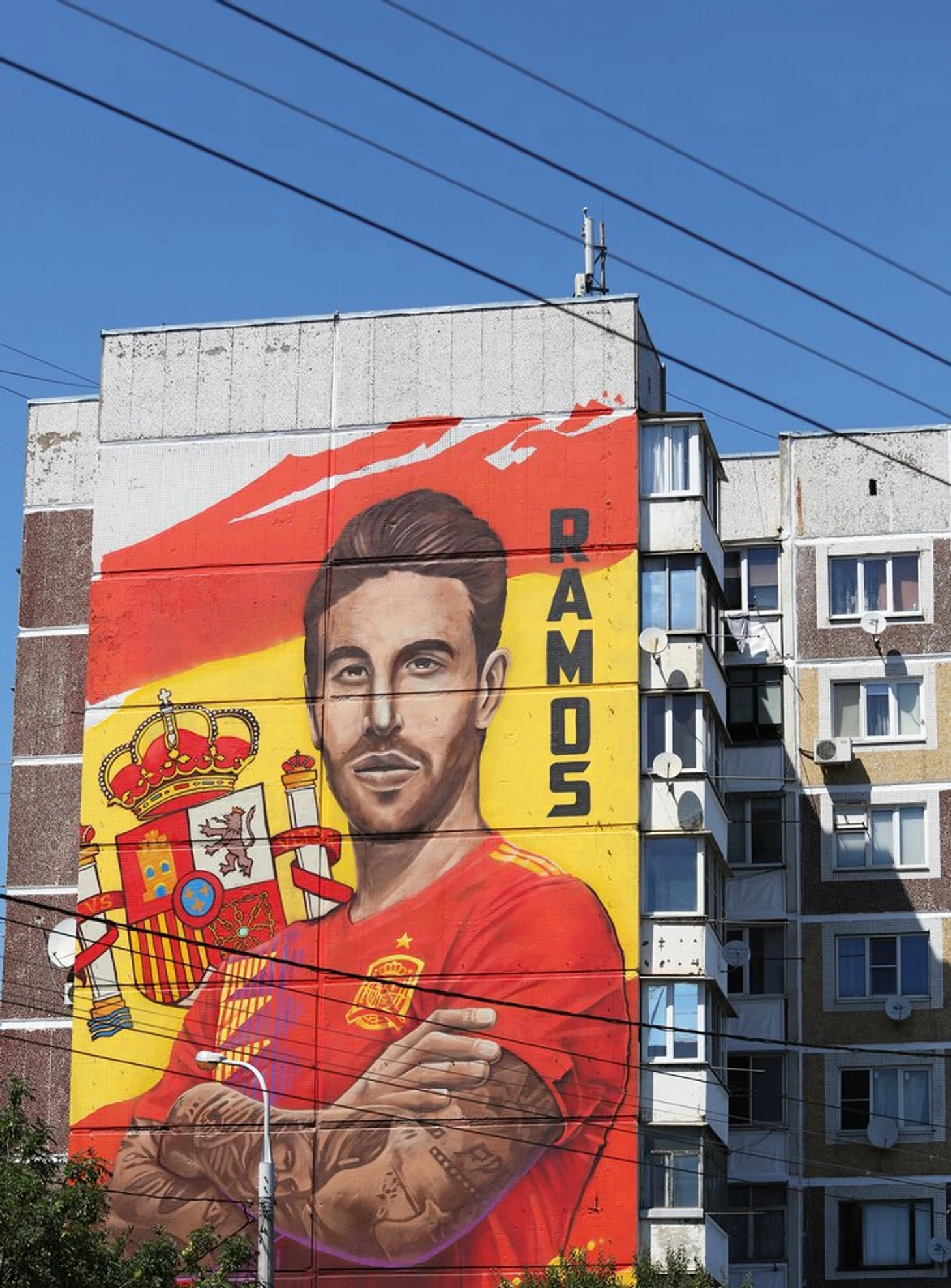 В Краснодаре стрит-арт проявился щегольским взглядом капитана «Фурии Роха». Серхио Рамос с благодарностью отметил этот мурал, разлетевшийся на фотографиях по всему миру.