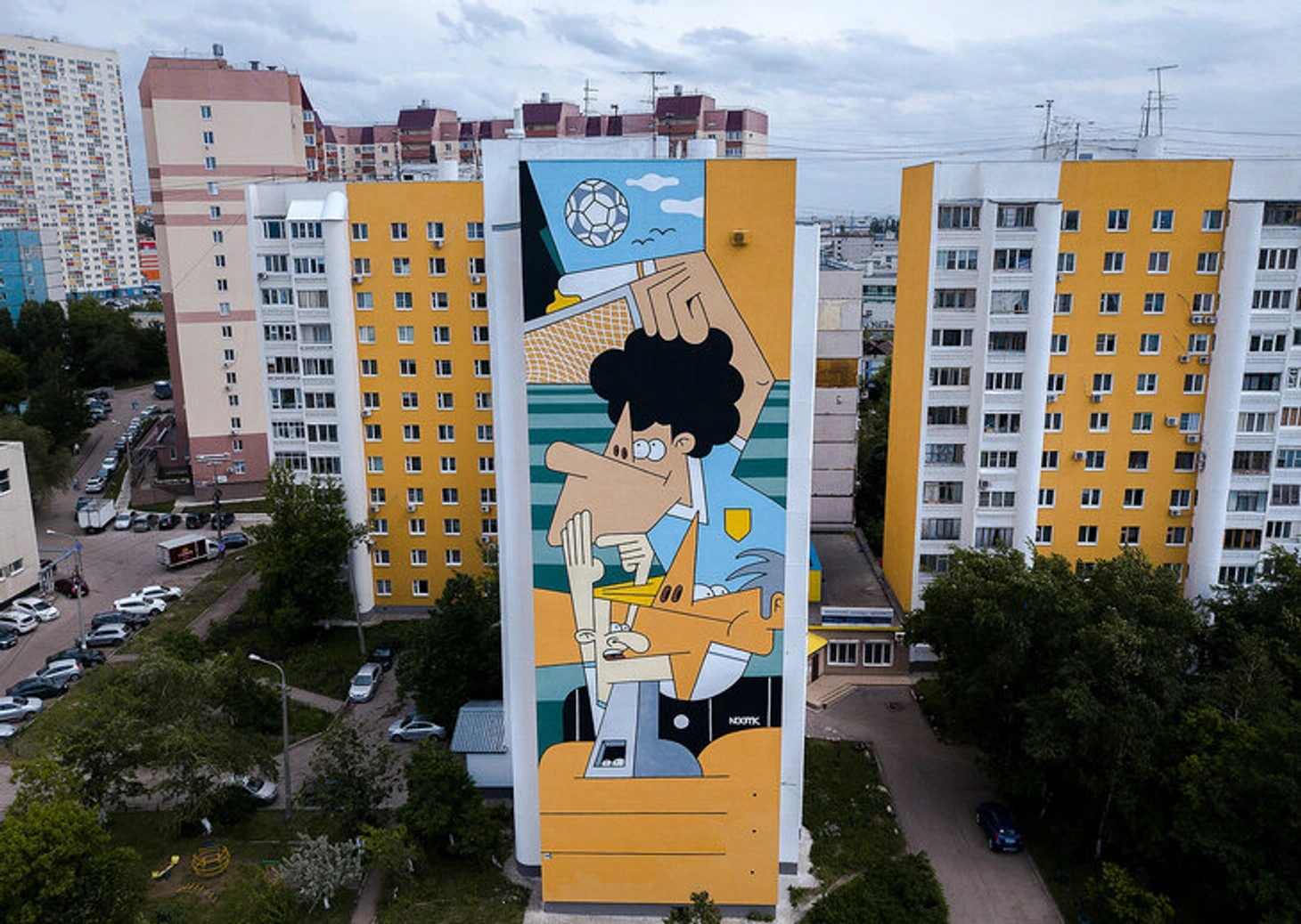 Ну а чемпионом по арт-муралам к ЧМ стала Самара. В рамках проекта «Истории чемпионов» были приглашены мастера со всей России, которые расписали с десяток домов по всему городу.