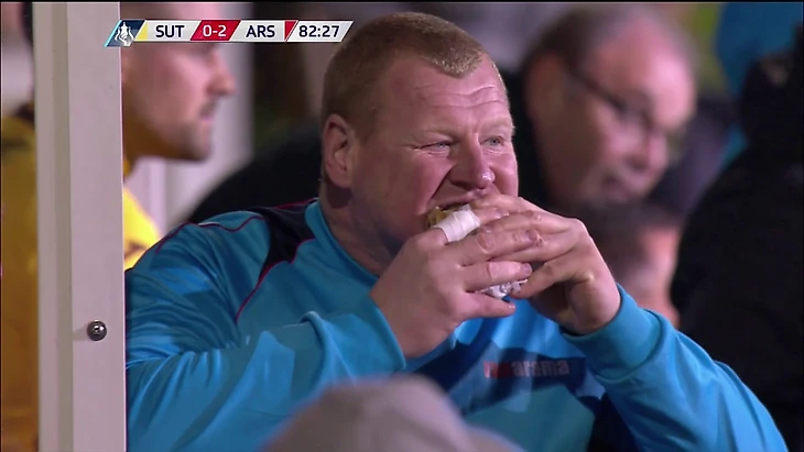 В преддверии игры, букмекерская компания проспонсировала команду и теперь красовалась на футболках «Саттона», заплатив клубу за рекламное пространство вокруг стадиона, потому что матч должен был транслироваться по британскому телевидению в прайм-тайм. Их запасной вратарь, 45-летний Уэйн Шоу, увидел, что были использованы все три замены, и решил съесть мясной пирог, что привлекло внимание телекамер.