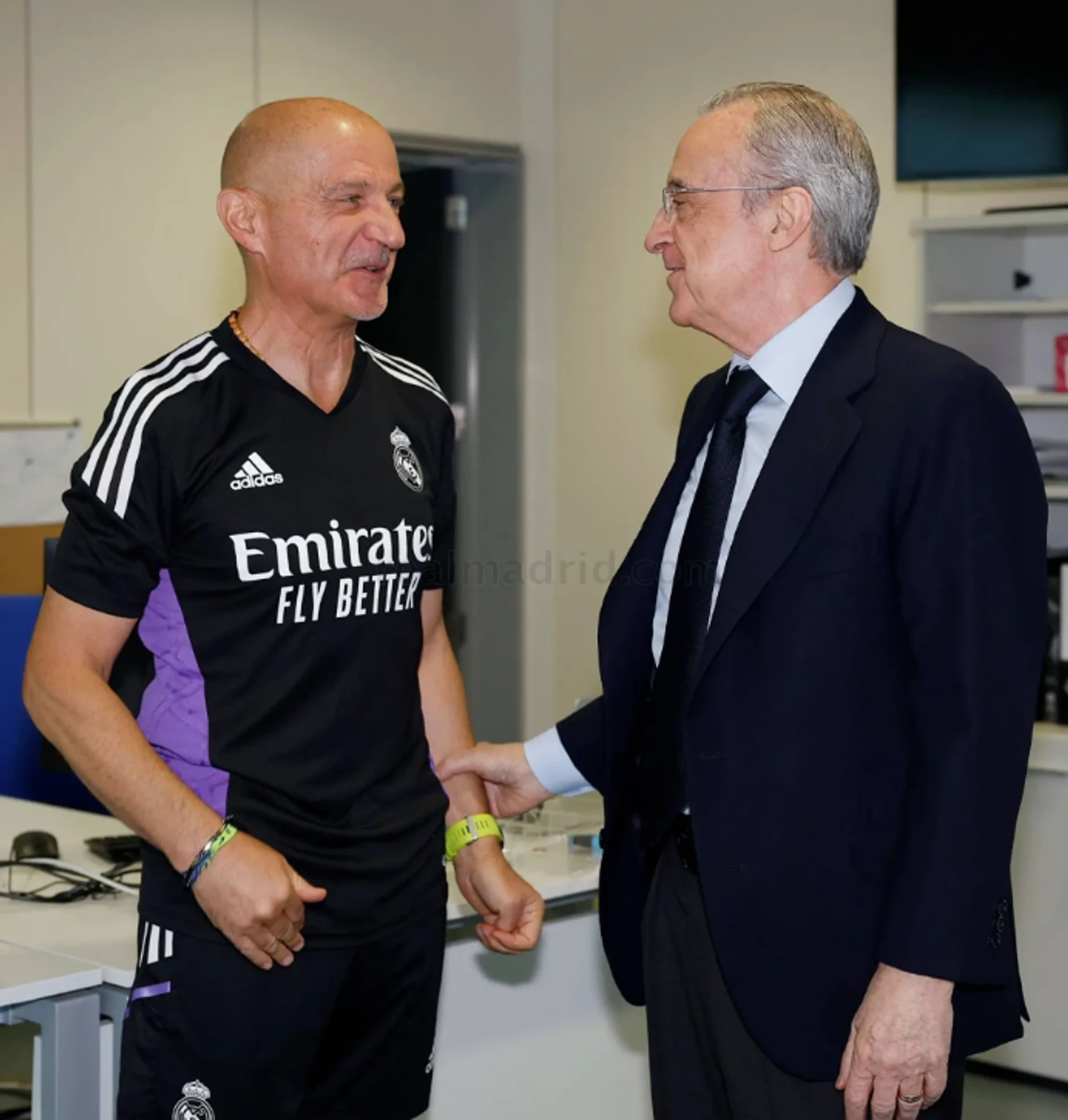 На следующий день Винисиус-младший , Родриго и Каземиро вернулись на тренировочную площадку. Вот свежие фото с тренировок мадридского «Реала». Перес с Антонио Пинтусом: