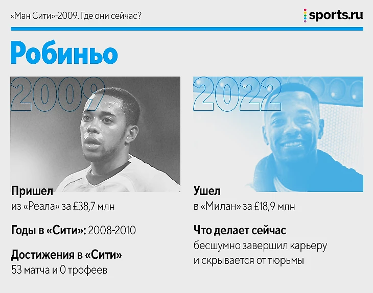 После этого наследник Пеле залег на дно: притих в Бразилии и перестал летать в Европу (поэтому и покинул турецкую лигу). Все из-за дела об изнасиловании – итальянский суд приговорил его к девяти годам тюрьмы без права апелляции. Бразилия не выдает преступников Италии, но европейцы пытаются убедить бразильские власти наказать футболиста хотя бы на родине. Официально Роб не завершал карьеру, но недавно сорвался на журналиста, который нашел его номер телефона – в коротком диалоге Робиньо прокричал, что давно завязал с футболом.