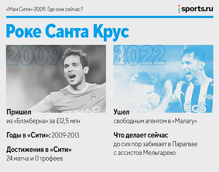 Несмотря на травмы, Хьюз верил в Санта Круса – все изменилось после прихода Манчини. Эмоциональный итальянец не нашел общий язык с тихим и интеллигентным форвардом – лучшим вариантом было уйти. Роке скитался по арендам в «Блэкберне», «Бетисе» и «Малаге», пока не истек контракт. За 21 млн «Сити» получил всего четыре гола.