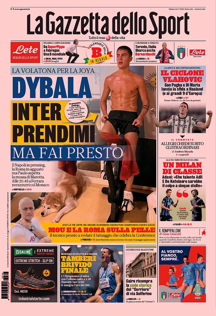 Дибала, дата. Заголовки Gazzetta, TuttoSport и Corriere за 16 июля