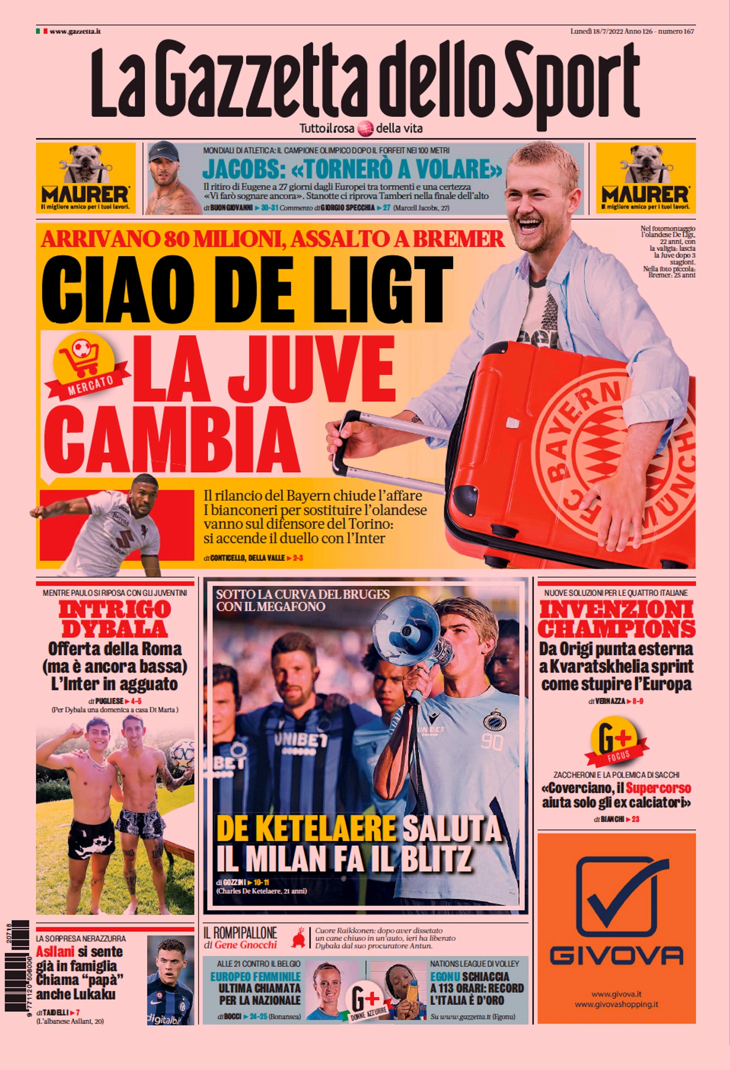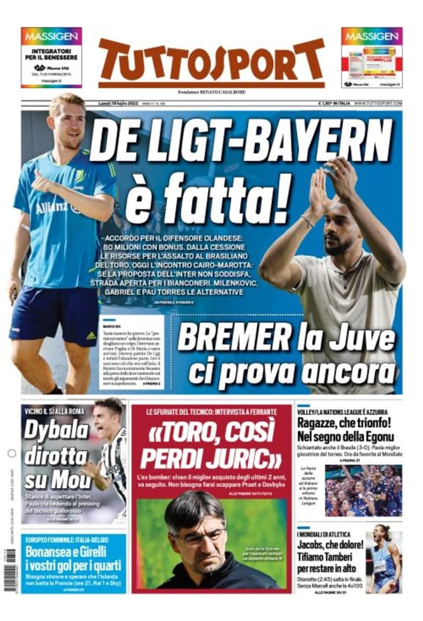 Де Лигт-«Бавария», дело сделано! Заголовки Gazzetta, TuttoSport и Corriere за 18 июля