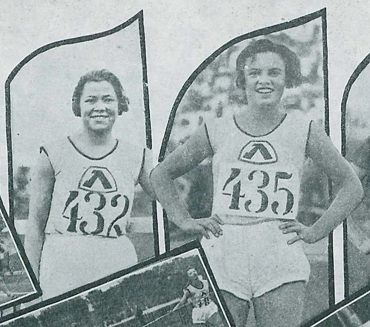 Август 1928 года. Спартакиада. Легкоатлетки Стогова (№ 432) и Дударева (№ 435) из сборной Ленинграда. Фото из альбома «Спартакиада» (под общей редакцией В. Михельса, Москва, 1928 год, издательство АО «Физкультура и спорт»)