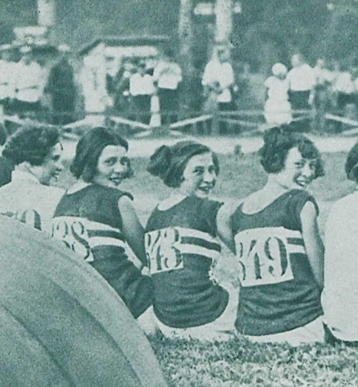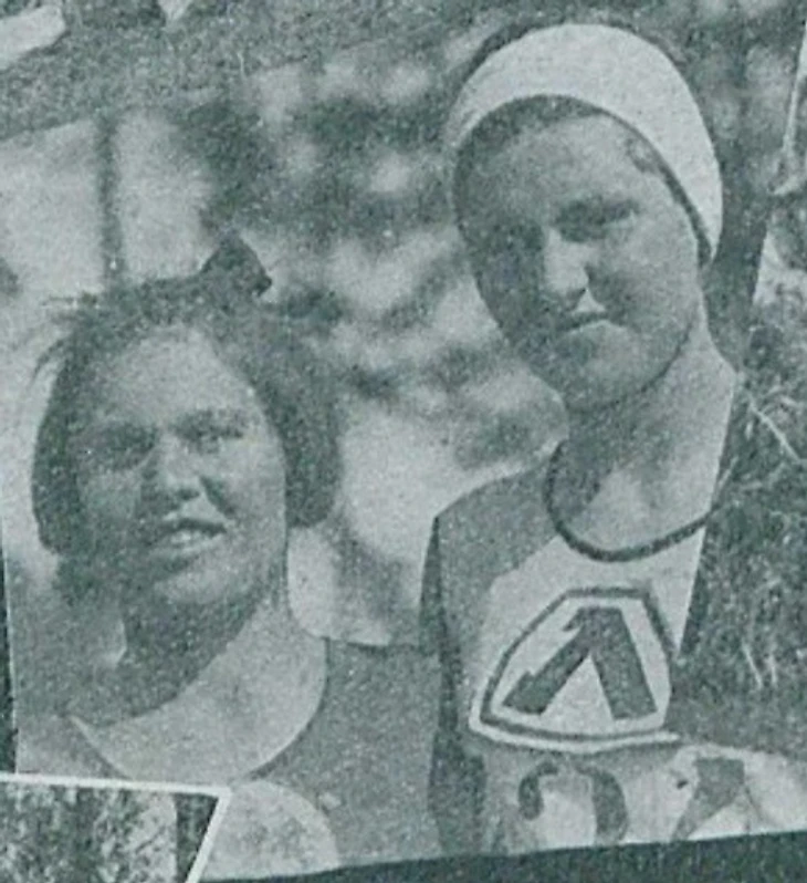 Август 1928 года. Спартакиада. Спортсменка из ЗСФСР (справа). Фото из альбома «Спартакиада» (под общей редакцией В. Михельса, Москва, 1928 год, издательство АО «Физкультура и спорт»)