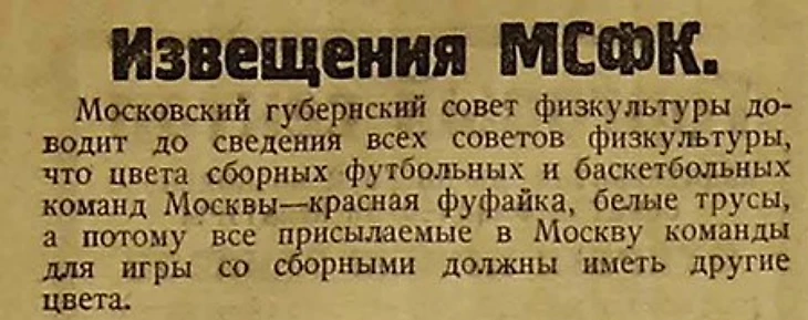 Извещение МГСФК о цветах сборных Москвы (газета «Красный спорт» № 2 (16) от 27 июля 1924 года)