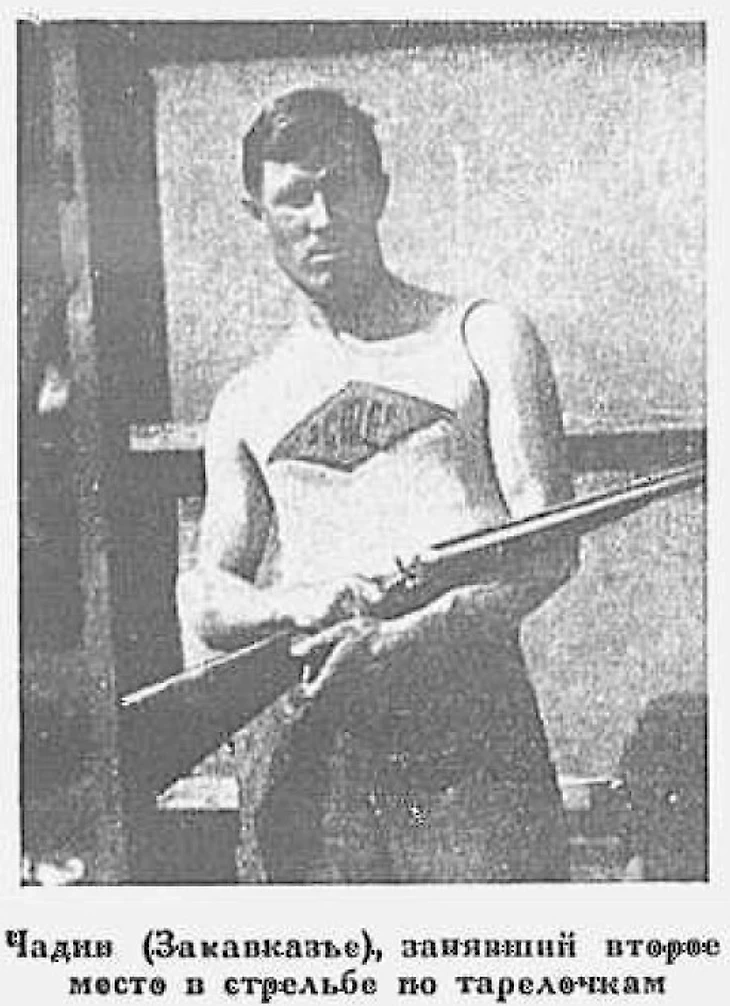 Август 1928 года. Спартакиада. Стрелок Чадин (Закавказская Социалистическая Федеративная Советская Республика). Фото из еженедельного журнала «Физкультура и спорт» № 35 за 1 сентября 1928 года
