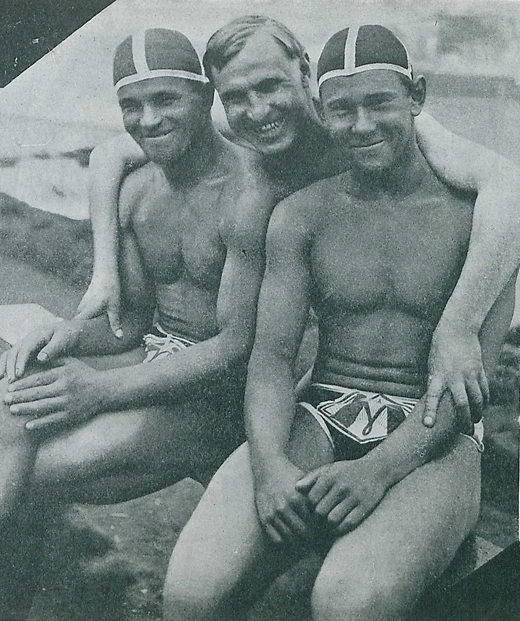 Август 1928 года. Спартакиада. Пловцы из сборной Москвы. Фото из альбома «Спартакиада» (под общей редакцией В. Михельса, Москва, 1928 год, издательство АО «Физкультура и спорт»)