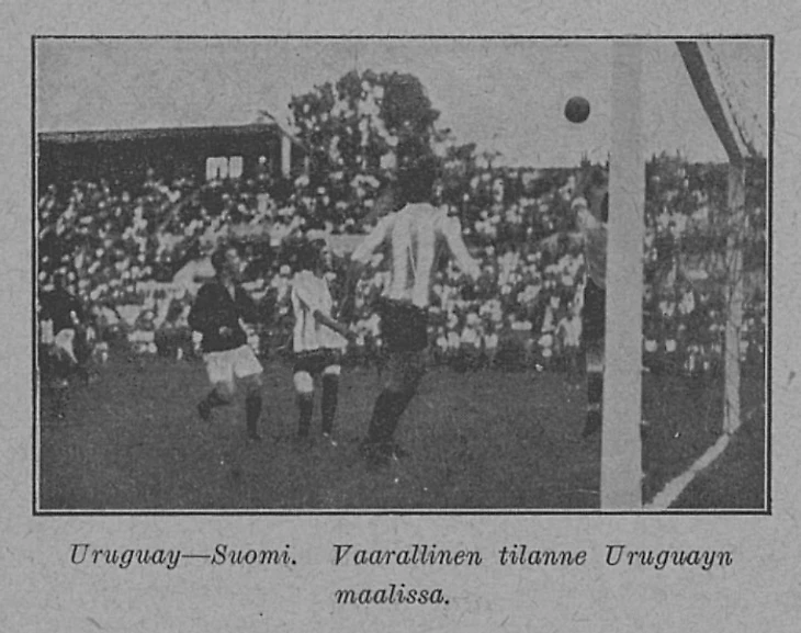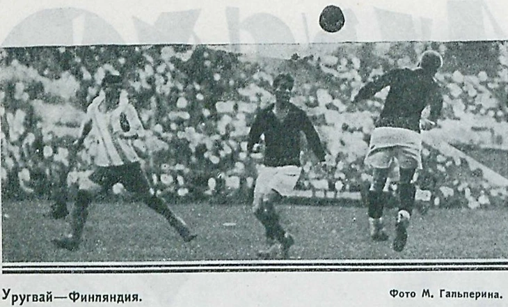 19 августа 1928 года. Полуфинал группы союзных республик. Стадион «Динамо». Уругвай - Финляндия - 3:1 (2:1). Фото из еженедельного журнала «Тюёвяен урхейлулехти» № 37-38 от 13 сентября 1928 года