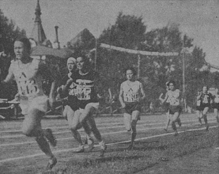 18 августа 1928 года. Спартакиада. Стадион имени Томского Союза пищевиков. Один из забегов на 800 метров у женщин (журнал «Тюёвяен урхейлулехти» № 37-38 от 13 сентября 1928 года)