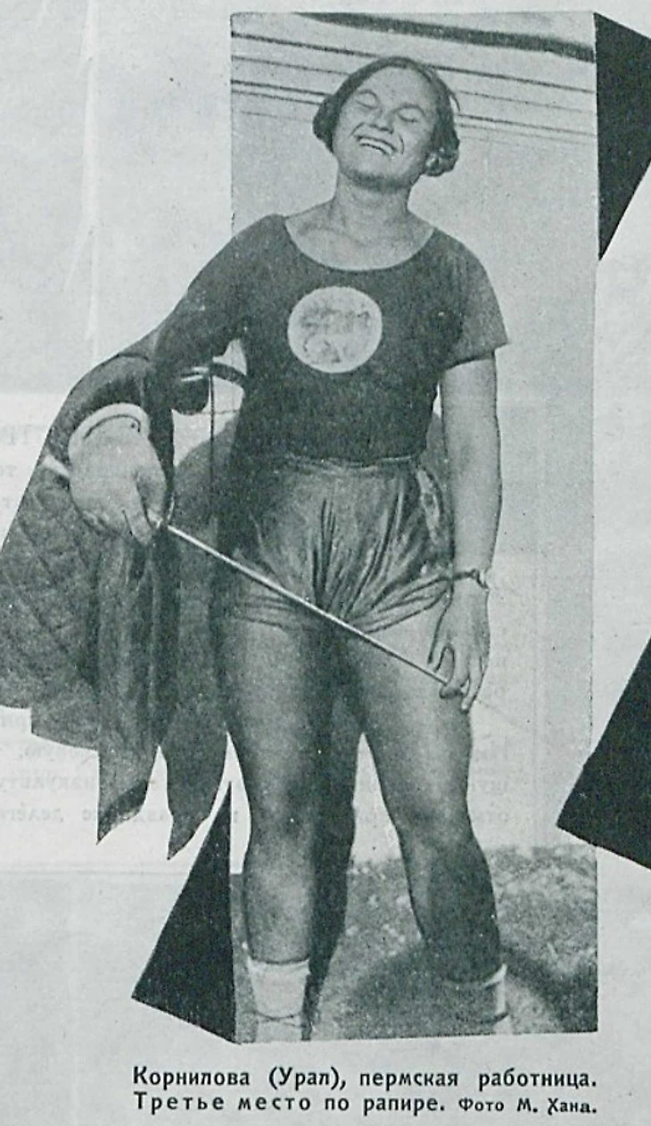 Август 1928 года. Спартакиада. Рапиристка Корнилова (Урал). Фото из альбома «Спартакиада» (под общей редакцией В. Михельса, Москва, 1928 год, издательство АО «Физкультура и спорт»)
