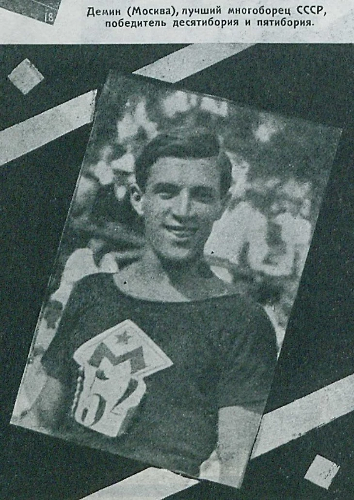 Демин - лучший многоборец СССР, победитель десятиборья и пятиборья. Фото из альбома «Спартакиада» (под общей редакцией В. Михельса, Москва, 1928 год, издательство АО «Физкультура и спорт»)