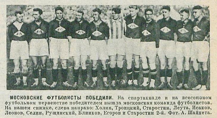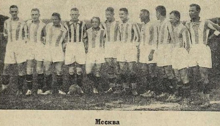 А вот она на форме футбольной сборной Москвы в июне 1928 года.