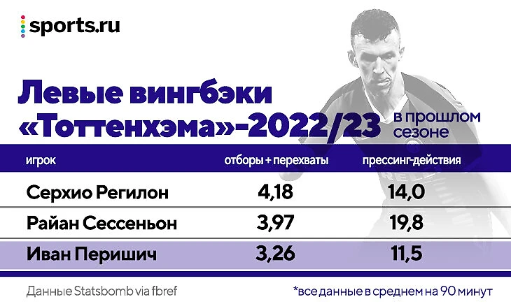С появлением Перишича у «Тоттенхэма» стало три левых вингбэка. Без мяча и Регилон, и Сессеньон агрессивнее хорвата