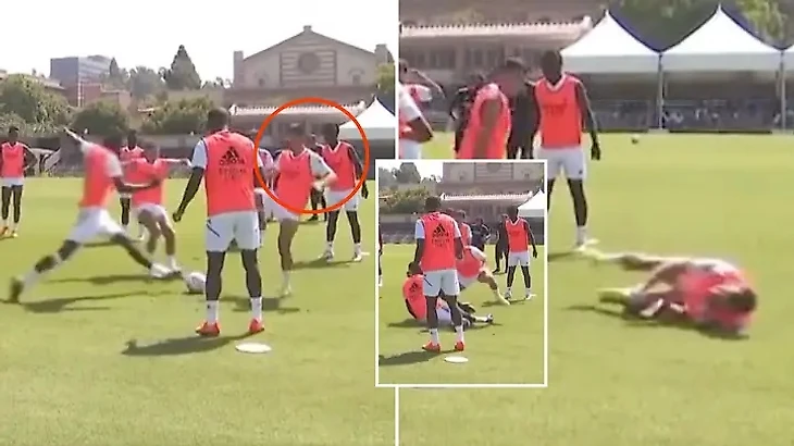 📹 Антонио Рюдигер вырубил Эдена Азара, бельгиец не смог завершить тренировку