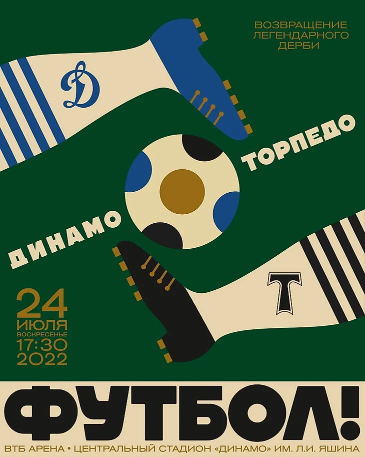 В «Динамо» рискнули выступить в том же жанре. Автор афиши — дизайнер Дмитрий Пантюшин. Кем вдохновлялся — неизвестно. Но, кажется, не уступил более опытному оппоненту.