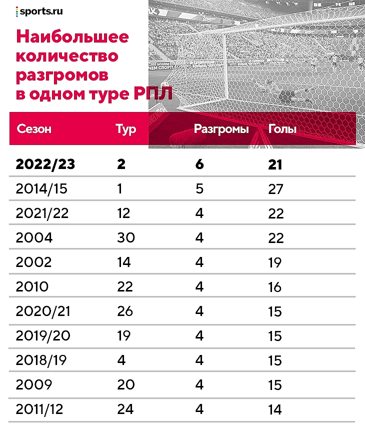 Шесть разгромов в туре – рекорд РПЛ! Такого в истории лиги еще не случалось.