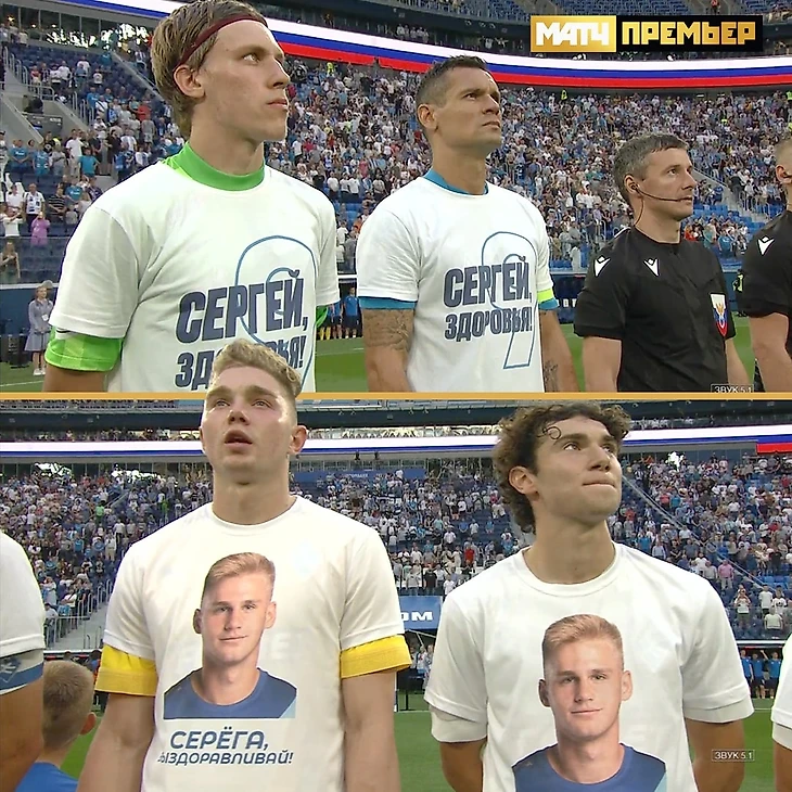 "Зенит" и "Крылья Советов" сыграли матч и поддержали нашего юного футболиста Сергея Пиняева. Если кто не в курсе, то во время тренировки, 17-летний игрок почувствовал себя плохо и был доставлен в реанимацию. Говорили разное, но по последней информации у него пневмоторакс, состояние нормальное, но на восстановление может уйти полгода. Здоровья!
