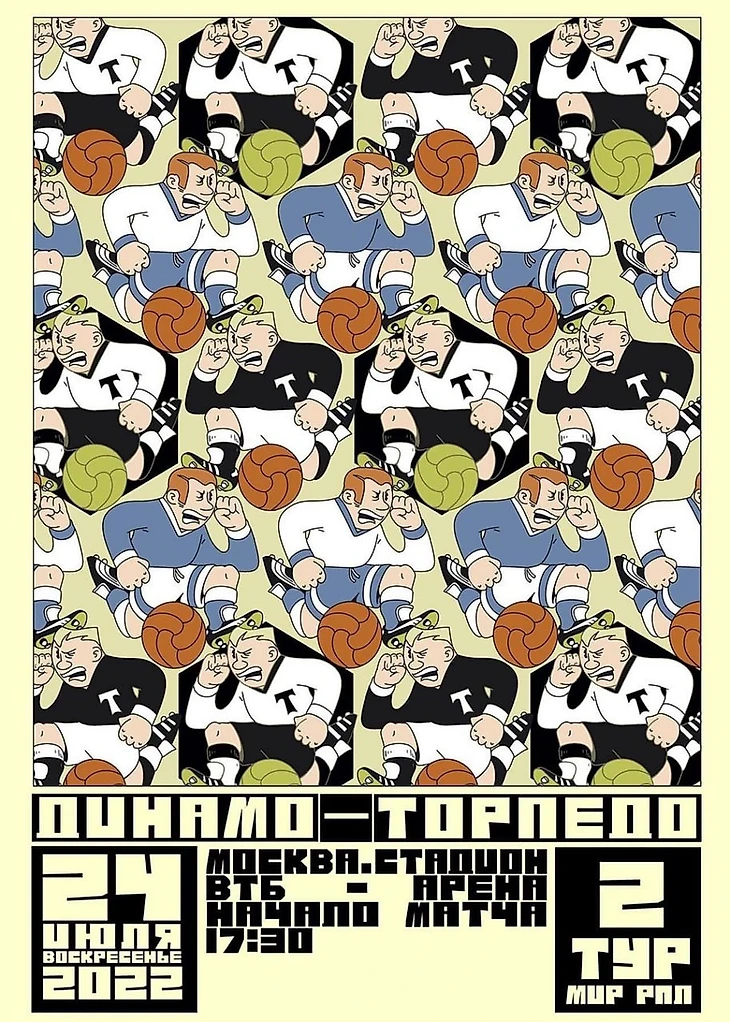 Афиша матча с "Сочи" - отсылка к творчеству Альфреда Лите. К "Динамо" - вдохновение "Всадниками" Маурица Корнелиуса Эшера. Красота!