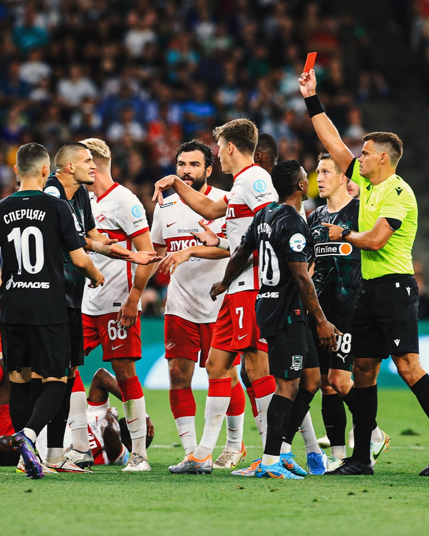 На матче "Спартака" без скандала никак. Оценить все (не)верные решения Кирилла Левникова можно здесь.
