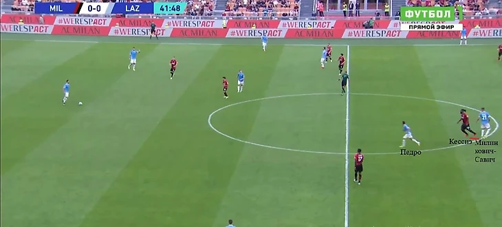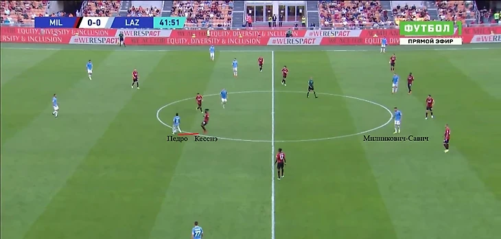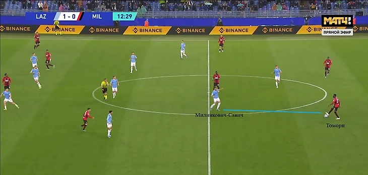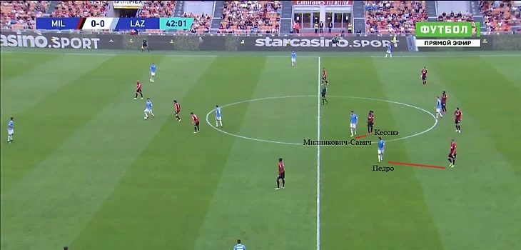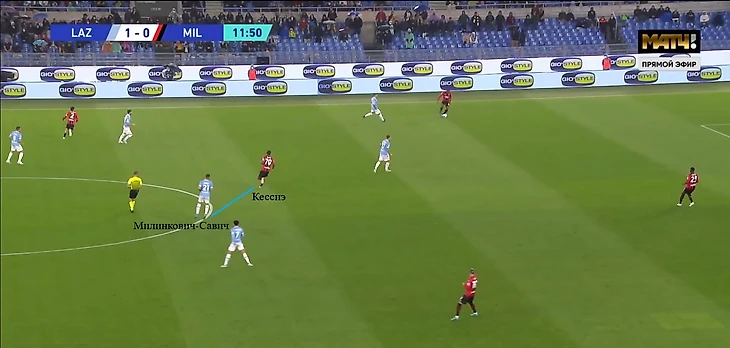 Например, против «Милана» Милинкович-Савич помимо своей базовой задачи (держать зону в расстановке 4-5-1) часто оказывался персонально рядом с Кессиэ и старался накрывать его на приеме. При этом выдергивание из линии на Томори осталось среди его обязанностей как восьмерки в построениях Сарри.