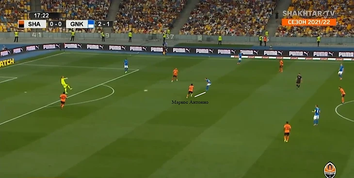 Маркос Антонио умеет контролировать темп игры и сохранять владение через короткие и средние передачи. Он редко спешит с решением и старается своевременно отдать пас на партнера. Благодаря качественной обработке ему удается развернуть атаку на другой фланг или самому начать движение с мячом выше.